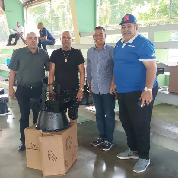 El alcalde, Ing. Julio Abreu, y el Ayuntamiento de Cayetano Germosén agradecen al Ministro de Deportes, Ing. Kelvin Cruz por acoger nuestro llamado y disponer el cambio de 16 luminarias del multiuso de nuestra comunidad.