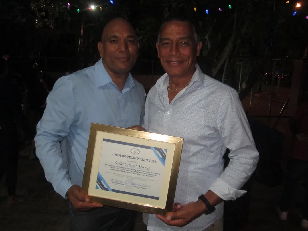 La Junta de Vecinos San José de la Urbanización Sánchez otorgó un reconocimiento al alcalde Ingeniero Julio Abreu, en agradecimiento a su apoyo constante, cercanía y compromiso con el desarrollo de la comunidad. Durante el acto, el alcalde agradeció profundamente la distinción recibida, valorando el respaldo de la junta de vecinos y reafirmando su compromiso de continuar trabajando de la mano con las comunidades, impulsando iniciativas que contribuyan al bienestar y progreso del municipio.