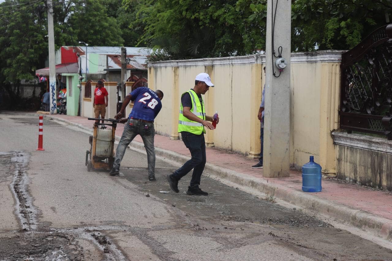 Proceso de corte de la capa de asfalto para el bacheo y acondicionamiento de la calle Tunti Cáceres. Este proyecto es parte de nuestros esfuerzos continuos para mejorar la estructura vial en nuestro municipio, brindando calles más seguras y transitables para todos.
