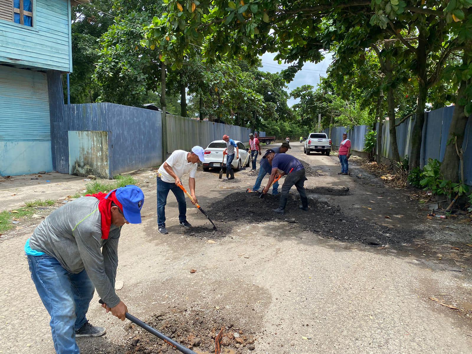 Trabajos de bacheo en los caminos vecinales y calles de nuestro municipio Cayetano Germosén. Este esfuerzo tiene como objetivo mejorar las condiciones de las vías locales, garantizando una circulación más segura y cómoda para todos los residentes y visitantes.